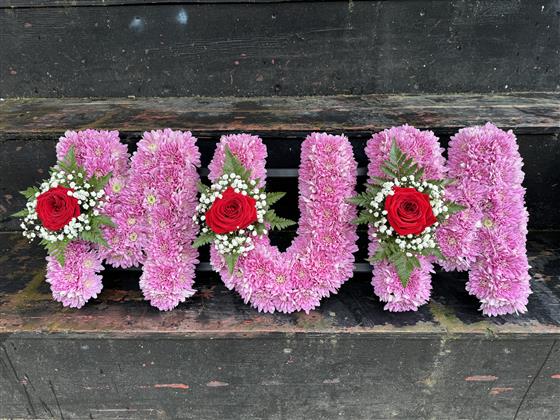MUM TRIbUTE PINK MASSED WITH RED ROSES