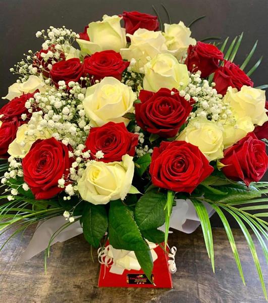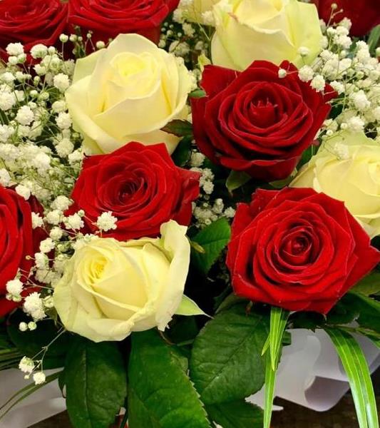 When it’s difficult to choose red or white why not do both. The bouquet really is a beautiful one including 12 best red roses. 12 best cream roses.